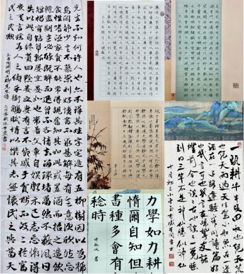 硬笔书法聚焦日常书写实用,经过专项训练,同学们掌握了汉字结构和笔画节奏,字迹从潦草变得工整,整体观感清爽利落。软笔书法独具风雅,同学们在提按转折的练习中摸索墨色变化,于笔墨间感受传统文脉,渐渐涵养出从容的书写气度。